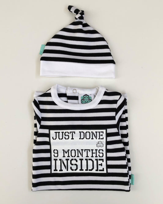 Lazy Baby Just Done 9 Months Inside Baby Grow (Pink Trim)
