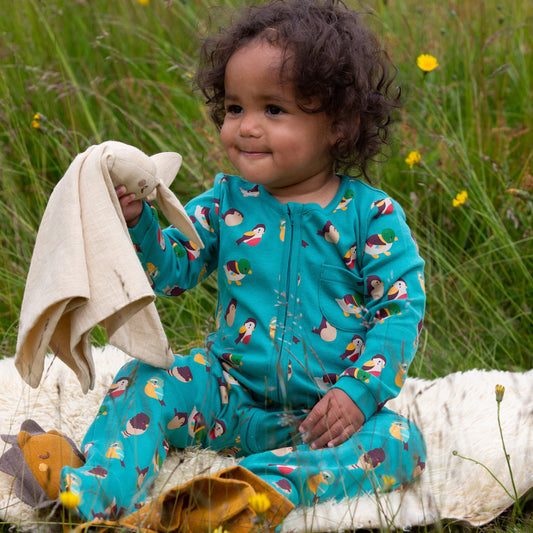 Little Green Radicals Garden Birds Organic Zip Babygrow